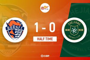上半场补时4分钟。半场战罢,青岛海牛1-0浙江队。