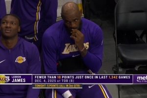 下一篇: 小拇指伤病影响?詹姆斯半场5中0一分未得 拿到4板6助&正负值-14