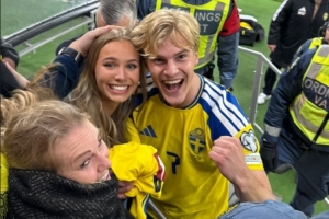 体育资讯4月1日讯 今天凌晨,瑞典击败波兰获得世界杯参赛资格,瑞典球员贝里瓦尔的家人和女友都在现场观战,赛后他们也接受了媒体采访。